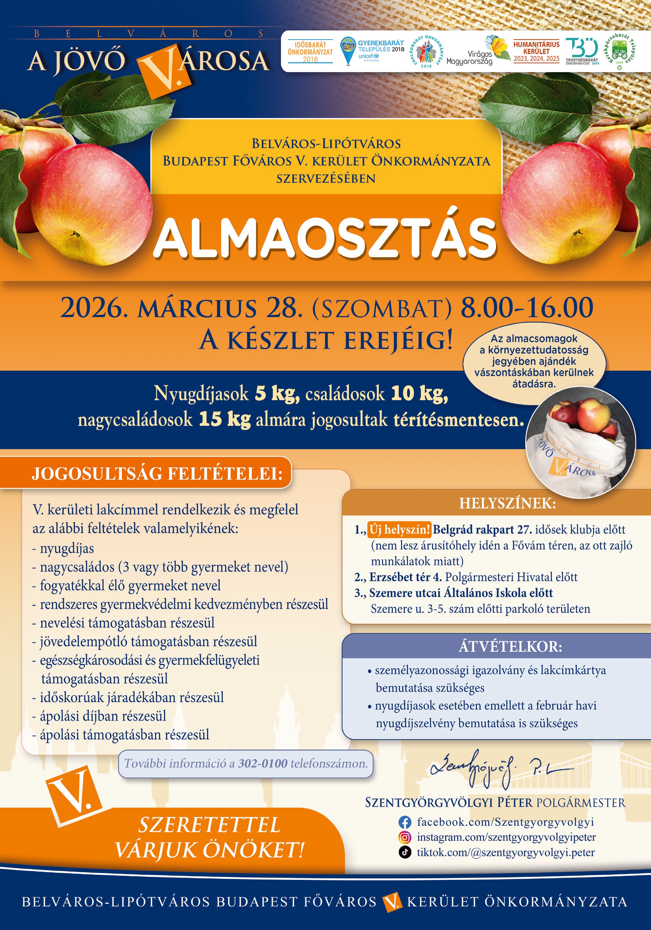 V. kerületi lakcímmel rendelkezik és megfelel az alábbi feltételek valamelyikének: